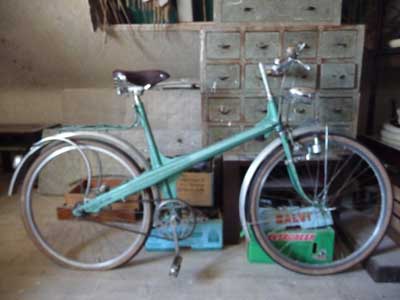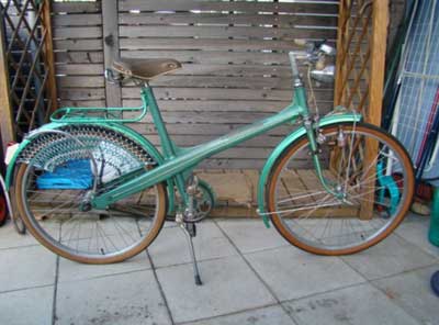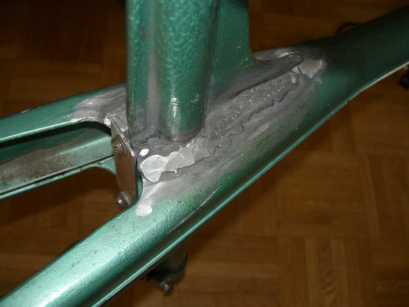 gehört Herrn Ben Schmidt - Frankfurt am Main. Ist oberhalb vom Tretlager gebrochen. Diese Problem wurde ab 1959 durch Verstärkungen gelöst. Mittlerweile wurde es vom Argon-Schweißer repariert. Bitte auf das Bild klicken. |