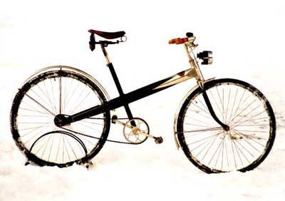 Neben den Kreuzrahmen des späten 19. Jhdt. gibt es auch im 20. Jhdt. andere Beispiele für Fahrräder mit Kreuzrahmen. Wobei diese sich ähnlich wie das HK-Rad und das Hercules 2000 rein optisch durch wesenltich stärker dimensionierte Rahmen auszeichnen: |